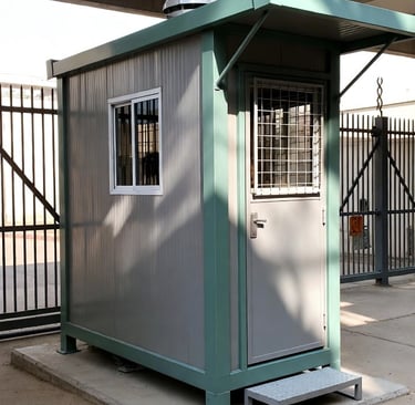 Compact cabins designed for security personnel at gates and entrances.